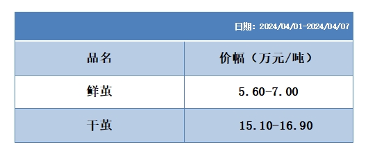 根據(jù)本周蠶繭報價按照指數(shù)方案形成的基準(zhǔn)品價格區(qū)間