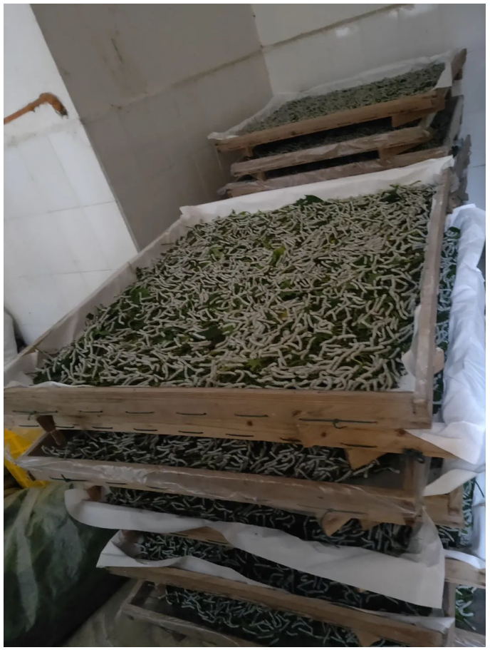 這是宜州某村的四齡蠶,反映蠶訊正常,桑樹長勢較好