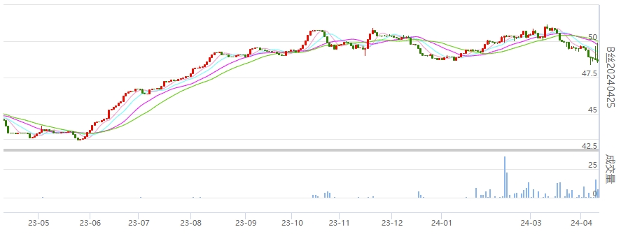 今日(2024年04月11日,周四)中國繭絲綢交易市場生絲指數(shù)持平收于4894.86點。B絲(商檢4A級生絲):240425合約下跌0.09萬元報收于48.66萬元;240925合約上漲0.15萬元報收于48.87萬元;250325合約上漲0.33萬元報收于49.32萬元。