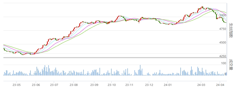今日(周四)盤面各生絲遠(yuǎn)近合約紅綠不一。現(xiàn)貨月240425合約價格微跌,倉量下降;新繭季的240925和250325合約今日收紅,凈持倉量有所增加。