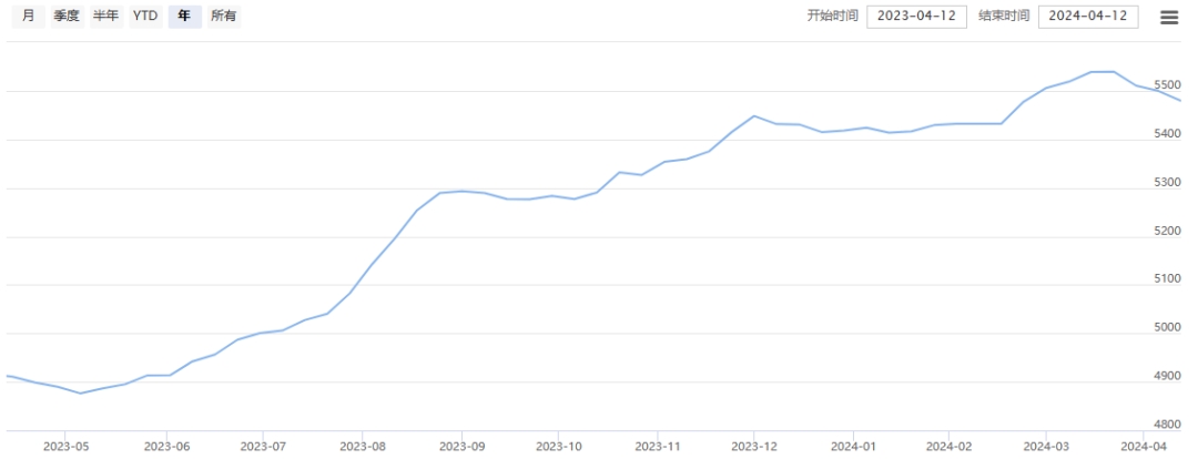 今日(2024年04月12日,周五)中國繭絲綢交易市場生絲指數(shù)上漲0.10%收于4899.68點,本周生絲指數(shù)下跌0.56%。B絲(商檢4A級生絲):240425合約上漲0.06萬元報收于48.72萬元;240925合約上漲0.03萬元報收于48.90萬元;250325合約上漲0.24萬元報收于49.56萬元。