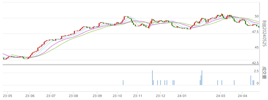 今日(2024年04月24日,周三)中國繭絲綢交易市場生絲指數(shù)報于4869.98點。B絲(商檢4A級生絲):240525合約下跌0.18萬元報收于48.51萬元;240925合約下跌0.18萬元報收于48.60萬元;250325合約下跌0.15萬元報收于48.93萬元。