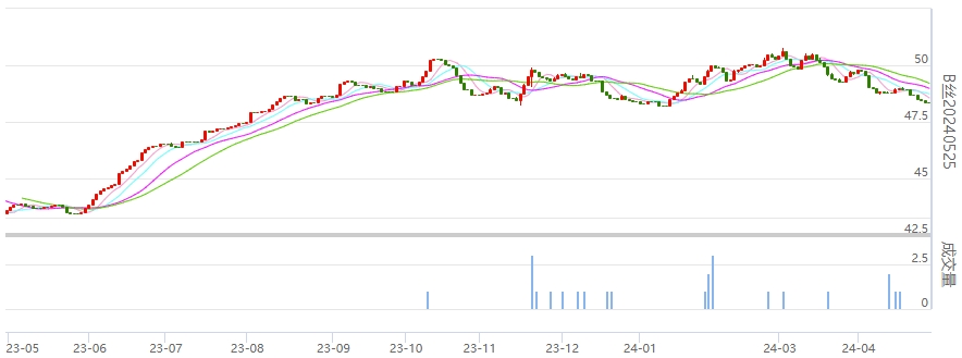 今日(2024年04月28日,周日)中國繭絲綢交易市場生絲指數(shù)微跌0.07%報于4854.17點(diǎn),本周生絲指數(shù)下跌0.91%。B絲(商檢4A級生絲):240525合約報平收于48.36萬元;240925合約下跌0.18萬元報收于48.42萬元;250325合約下跌0.03萬元報收于48.84萬元。