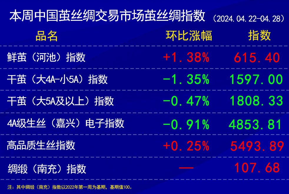 本周中國繭絲綢交易市場繭絲綢指數(shù)