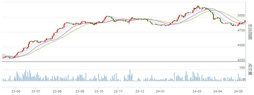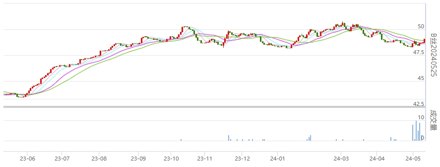 今日(2024年05月13日,周一)中國繭絲綢交易市場生絲指數(shù)上漲0.60%報于4948.02點。B絲(商檢4A級生絲):240525合約上漲0.33萬元報收于49.08萬元;240925合約上漲0.36萬元報收于49.83萬元;250325合約上漲0.33萬元報收于49.98萬元。