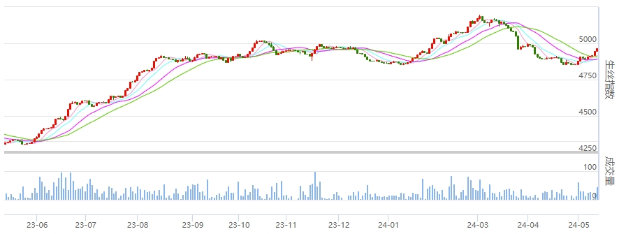 今日(周二),生絲各遠(yuǎn)近合約價(jià)格繼續(xù)上漲,成交較為活躍。今日主力合約240925合約持倉量稍有減少,250325合約有所增加。遠(yuǎn)合約收盤價(jià)格逐漸回到50萬元/噸上方。