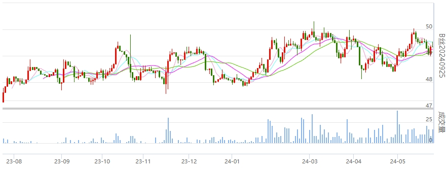 今日(周一)盤面生絲各遠(yuǎn)近合約小幅波動,活躍月份240925和250325合約繼續(xù)有所增倉,動盤成交更加活躍些。