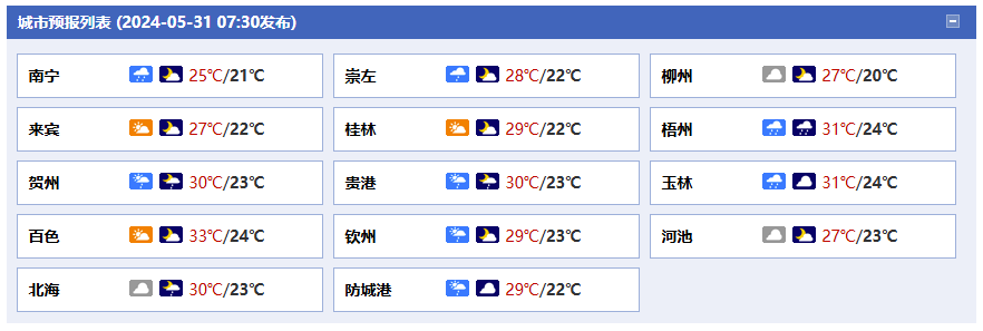 廣西氣象臺31日05時(shí)發(fā)布預(yù)報(bào):