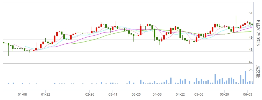 今日(2024年06月05日,周三)中國(guó)繭絲綢交易市場(chǎng)生絲電子指數(shù)下跌0.11%報(bào)于4960.28點(diǎn)。B絲(商檢4A級(jí)生絲):240625合約報(bào)平收于49.29萬元;240925合約下跌0.06萬元報(bào)收于49.41萬元;250325合約下跌0.09萬元報(bào)收于50.19萬元。