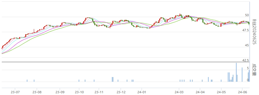 今日(2024年06月12日,周三)中國(guó)繭絲綢交易市場(chǎng)生絲電子指數(shù)下跌0.56%報(bào)于4898.32點(diǎn)。B絲(商檢4A級(jí)生絲):240625合約下跌0.21萬(wàn)元報(bào)收于48.87萬(wàn)元;240925合約下跌0.27萬(wàn)元報(bào)收于48.57萬(wàn)元;250325合約下跌0.18萬(wàn)元報(bào)收于49.29萬(wàn)元。