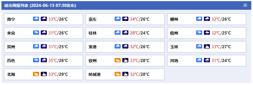 廣西氣象臺(tái)13日05時(shí)發(fā)布預(yù)報(bào):