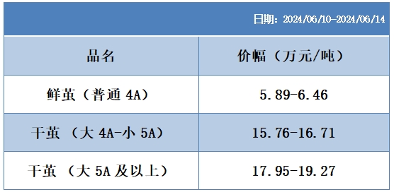 根據(jù)本周蠶繭報價按照指數(shù)方案形成的基準(zhǔn)品價格區(qū)間