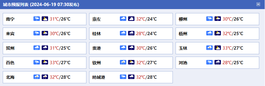 廣西氣象臺19日05時(shí)發(fā)布預(yù)報(bào):