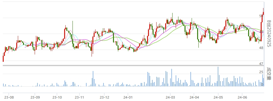 今日(2024年06月28日,周五)中國繭絲綢交易市場(chǎng)生絲電子指數(shù)上漲0.21%報(bào)于5015.72點(diǎn),本周生絲指數(shù)上漲2.33%。B絲(商檢4A級(jí)生絲):240725合約上漲0.09萬元報(bào)收于50.25萬元;240925合約上漲0.18萬元報(bào)收于50.37萬元;250325合約上漲0.03萬元報(bào)收于50.94萬元。