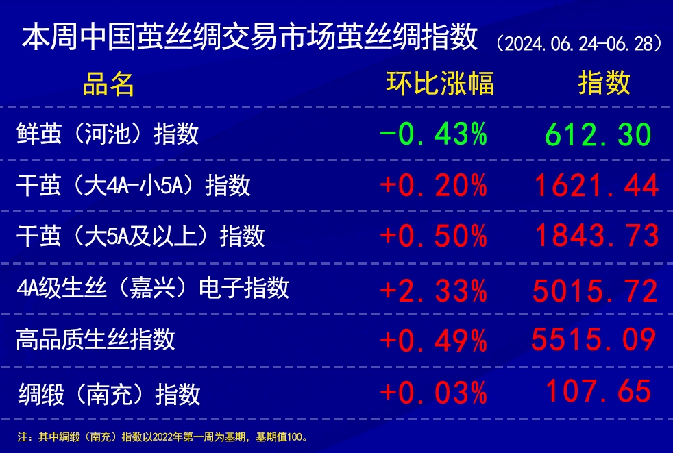 本周中國繭絲綢交易市場(chǎng)繭絲綢指數(shù)
