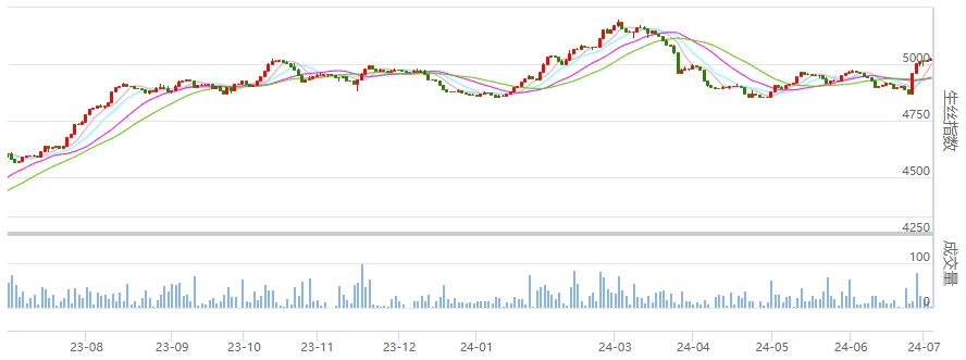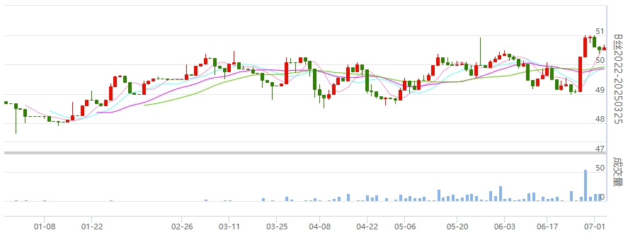 B絲40/44-240725合約上漲0.12萬元報48.42萬元;A絲20/22-240725合約上漲0.15萬元報51.72萬元。(更多行情詳情到首頁進行查看)
