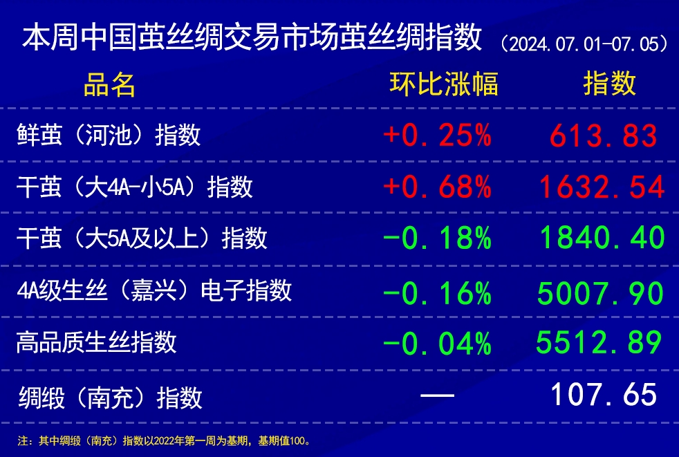 本周中國(guó)繭絲綢交易市場(chǎng)繭絲綢指數(shù)