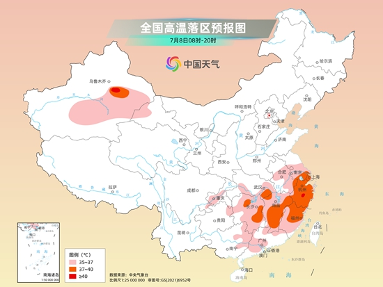 在副熱帶高壓控制之下,昨天江南、華南等地出現(xiàn)了大范圍高溫,其中浙江麗水局地氣溫甚至達(dá)到40℃以上。