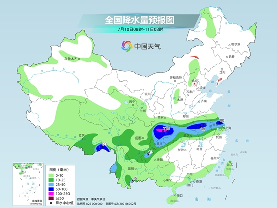 明天開始,雨帶將隨著副熱帶高壓南北擺動。預(yù)計(jì)明天至13日,雨帶西段維持在四川盆地、西北地區(qū)東南部,雨帶東段南壓至江淮一帶。