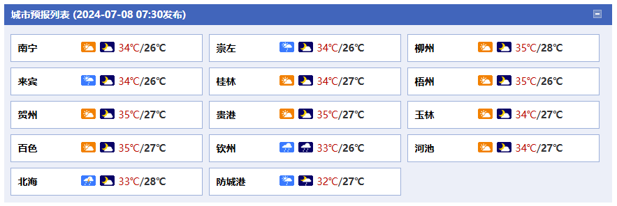 廣西氣象臺(tái)8日05時(shí)發(fā)布預(yù)報(bào):