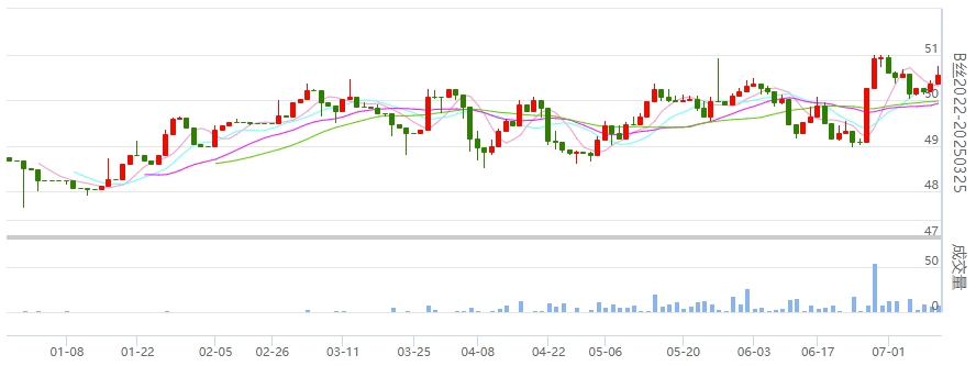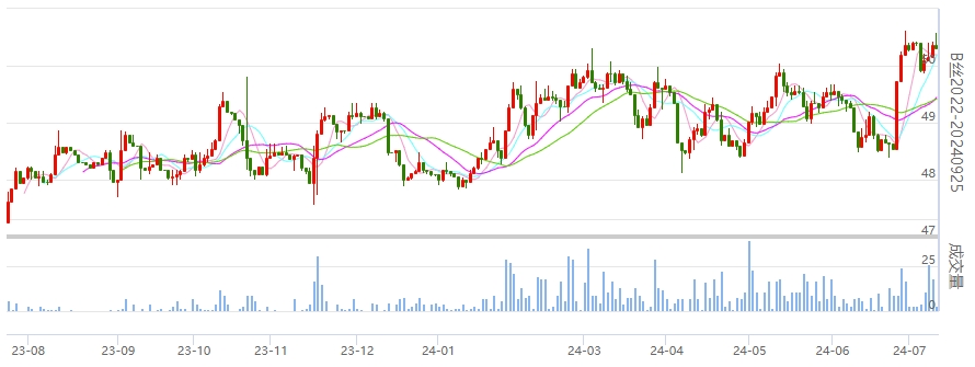 今日(2024年07月10日,周三)中國繭絲綢交易市場生絲電子指數(shù)上漲0.09%報(bào)5019.83點(diǎn)。B絲2022D(商檢4A級生絲):240725合約上漲0.09萬元報(bào)收于50.22萬元;240925合約下跌0.06萬元報(bào)收于50.31萬元;250325合約上漲0.18萬元報(bào)收于50.55萬元。B絲40/44-240725合約報(bào)平收于48.42萬元;A絲20/22-240725合約上漲0.03萬元報(bào)收于51.87萬元。(更多行情詳情到首頁進(jìn)行查看)