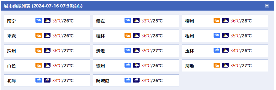 廣西氣象臺(tái)16日05時(shí)發(fā)布預(yù)報(bào):