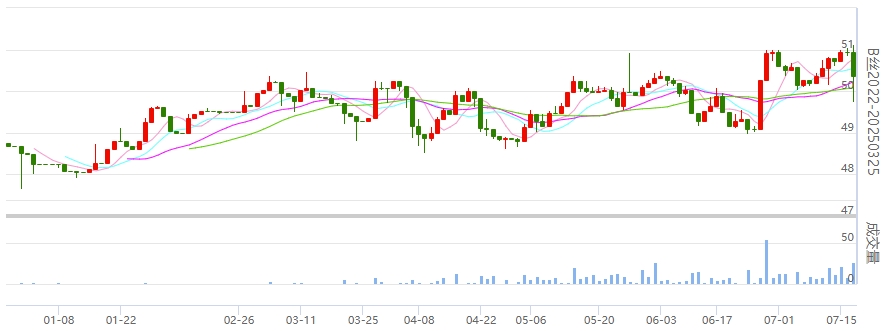 今日(2024年07月17日,周三)中國繭絲綢交易市場生絲電子指數(shù)下跌0.62%報5057.83點。B絲2022D(商檢4A級生絲):240725合約下跌0.36萬元報收于50.85萬元;240925合約下跌0.33萬元報收于50.88萬元;250325合約下跌0.57萬元報收于50.37萬元。B絲40/44-240725合約上漲0.03萬元報收于48.54萬元;A絲20/22-240725合約報平收于51.90萬元。(更多行情詳情到首頁進(jìn)行查看)