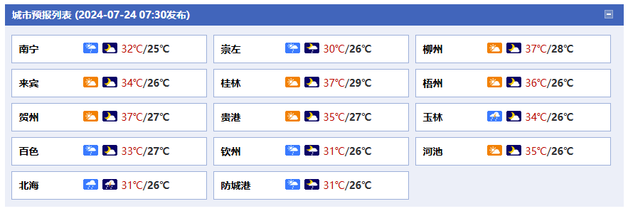廣西氣象臺(tái)24日05時(shí)發(fā)布預(yù)報(bào):