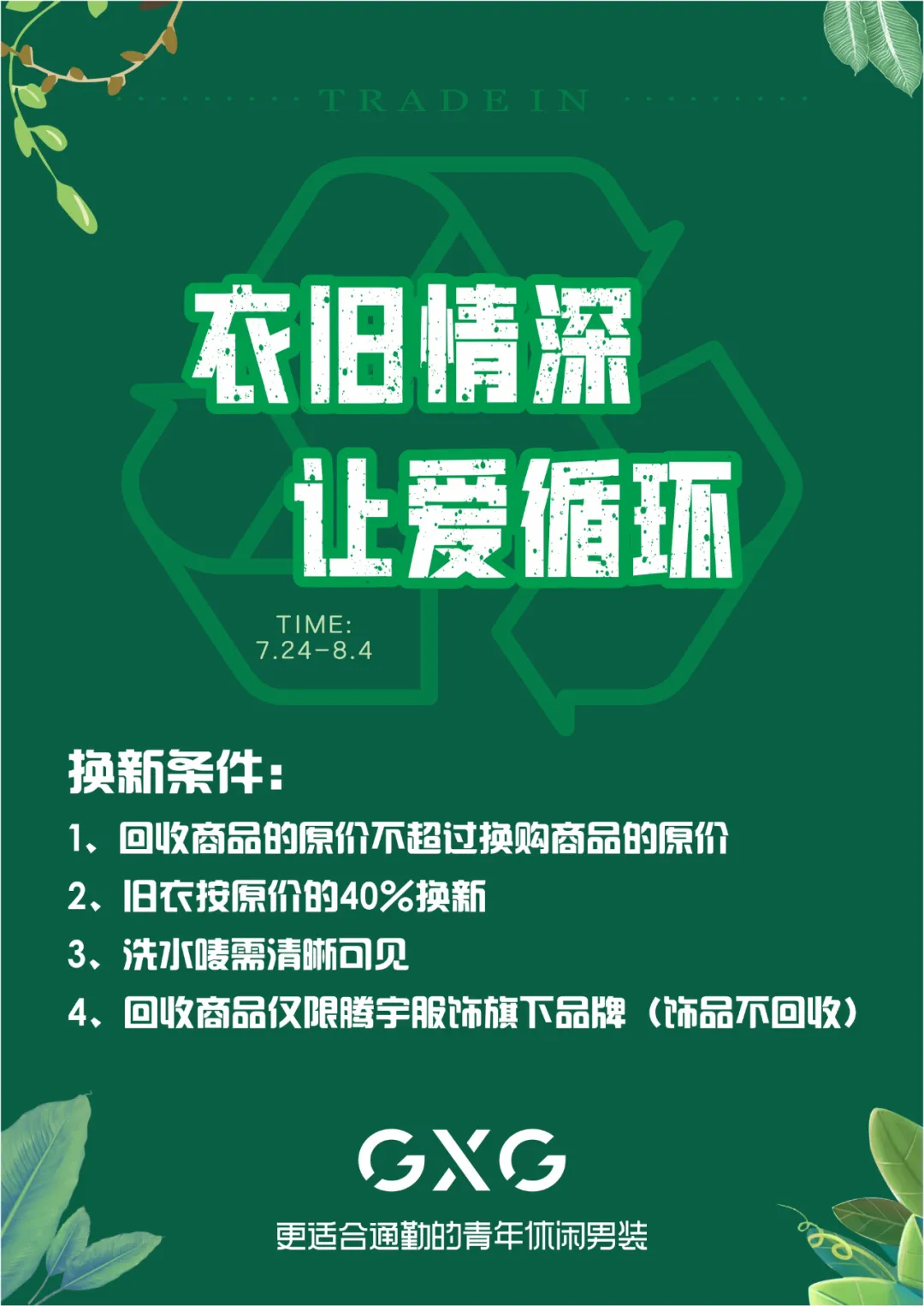 男裝GXG、九牧王等品牌在全國很多地方也正在進行“以舊換新”的促銷活動。