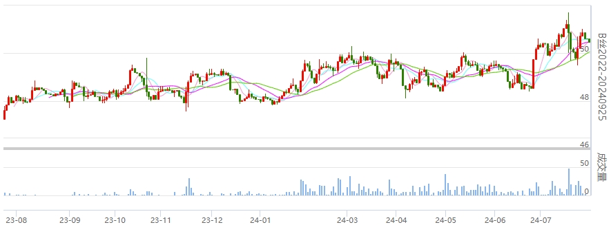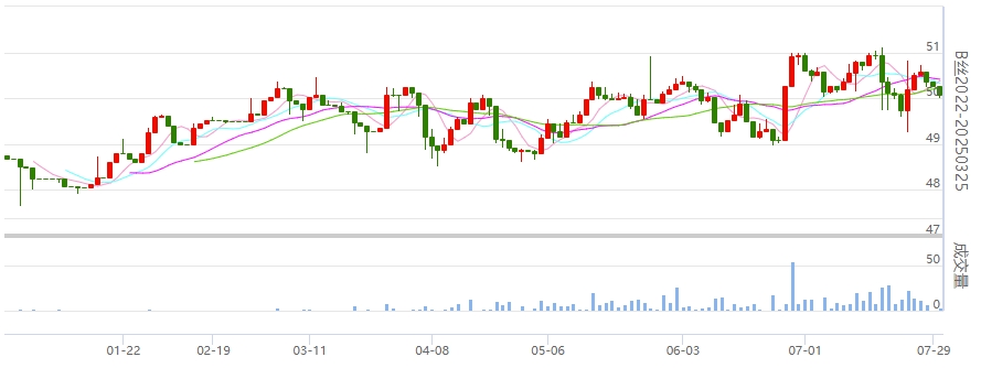 今日(2024年07月30日,周二)中國(guó)繭絲綢交易市場(chǎng)生絲電子指數(shù)微跌0.07%報(bào)5038.07點(diǎn)。B絲2022D(商檢4A級(jí)生絲):240825合約報(bào)平收于50.73萬(wàn)元;240925合約下跌0.15萬(wàn)元報(bào)收于50.46萬(wàn)元;250325合約下跌0.21萬(wàn)元報(bào)收于50.07萬(wàn)元。