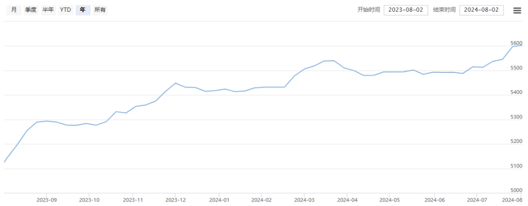 高品質(zhì)生絲指數(shù)上,本周協(xié)作單位所報(bào)筆數(shù)較多。處于行業(yè)淡季,織造企業(yè)根據(jù)需要進(jìn)行后期的原料備貨。在上周的上漲后,本周指數(shù)高位波動(dòng),微漲0.09%報(bào)收于5602.55點(diǎn)。