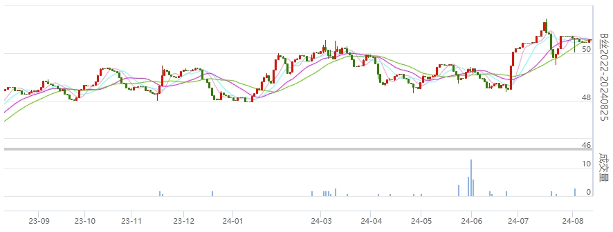 今日(2024年08月13日,周二)中國繭絲綢交易市場生絲電子指數(shù)持平報5008.02點(diǎn)。B絲2022D(商檢4A級生絲):240825合約報平收于50.58萬元;240925合約下跌0.06萬元報收于50.16萬元;250325合約下跌0.03萬元報收于49.98萬元。