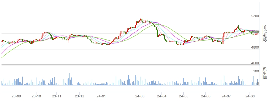 今日(2024年08月14日,周三)中國繭絲綢交易市場生絲電子指數(shù)持平報5005.88點。B絲2022D(商檢4A級生絲):240825合約報平收于50.58萬元;240925合約下跌0.06萬元報收于50.10萬元;250325合約上漲0.03萬元報收于50.01萬元。
