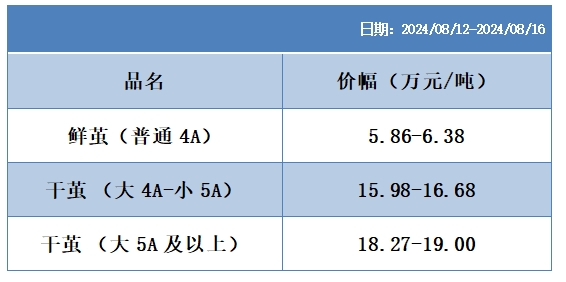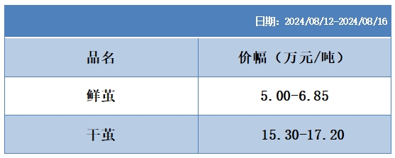 根據(jù)本周蠶繭報(bào)價(jià)按照指數(shù)方案形成的基準(zhǔn)品價(jià)格區(qū)間