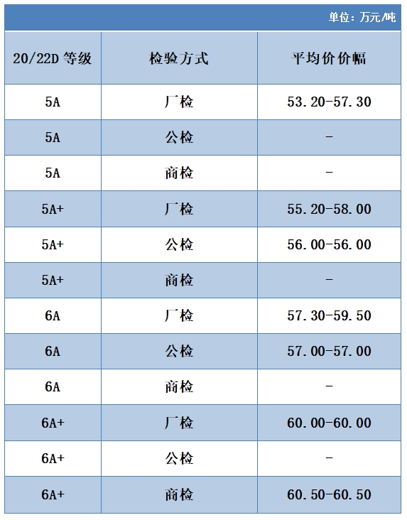 本周高品位生絲協(xié)作單位成交價(jià)格區(qū)間