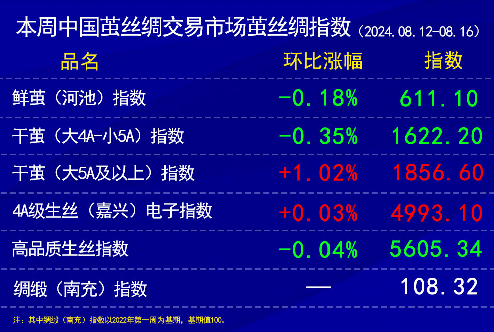 本周中國繭絲綢交易市場繭絲綢指數(shù)