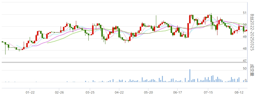 今日(2024年08月19日,周一)中國(guó)繭絲綢交易市場(chǎng)生絲電子指數(shù)微漲0.05%報(bào)4995.43點(diǎn)。B絲2022D(商檢4A級(jí)生絲):240825合約報(bào)平收于50.58萬(wàn)元;240925合約上漲0.18萬(wàn)元報(bào)收于50.01萬(wàn)元;250325合約上漲0.09萬(wàn)元報(bào)收于49.71萬(wàn)元。