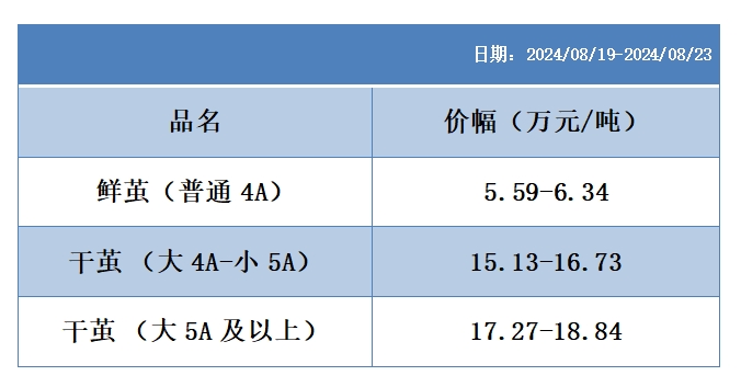 根據(jù)本周蠶繭報價按照指數(shù)方案形成的基準品價格區(qū)間