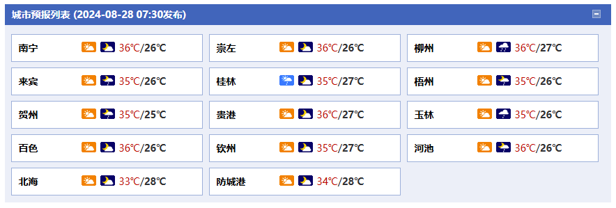 廣西氣象臺(tái)28日05時(shí)發(fā)布預(yù)報(bào):