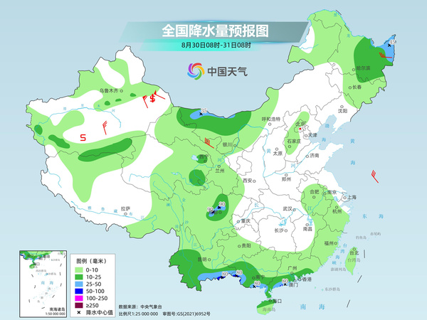 明天,甘肅河西、內(nèi)蒙古中東部、東北地區(qū)西部、華北北部、云南中西部、華南南部等地部分地區(qū)有中到大雨。
