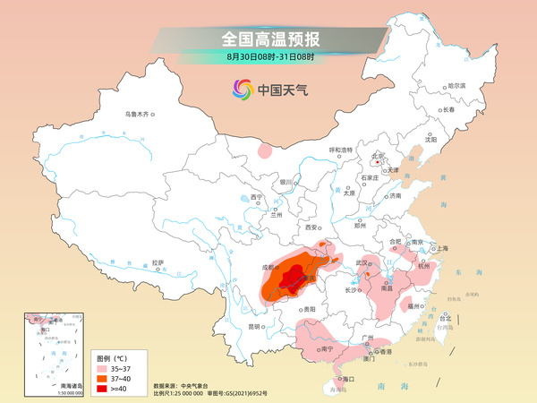未來三天(8月30日至9月1日),北方降水過程將自西向東展開影響,華北、東北及黃淮等地局地有大雨或暴雨,伴有強對流天氣,當(dāng)?shù)匦杈柚行『恿骱樗⑸襟w滑坡、泥石流等次生災(zāi)害的發(fā)生。同時,川渝地區(qū)高溫酷熱天氣持續(xù),或持續(xù)至9月上旬,明天起江南高溫天氣也將再度發(fā)展增多,公眾需及時補水降溫,謹防中暑和熱射病。