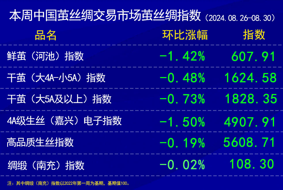 本周中國(guó)繭絲綢交易市場(chǎng)繭絲綢指數(shù)