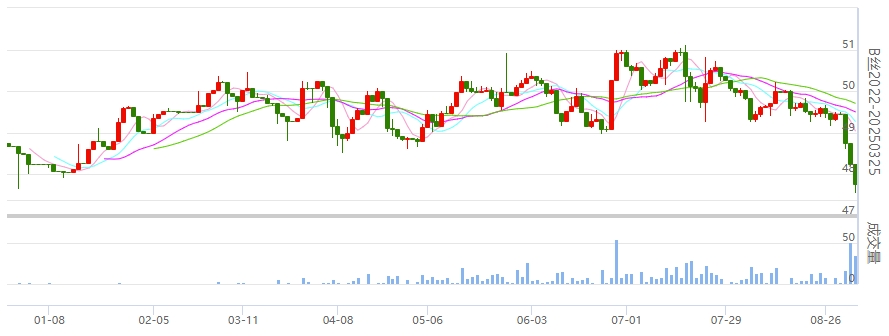 今日(2024年09月03日,周二)中國(guó)繭絲綢交易市場(chǎng)生絲電子指數(shù)下跌1.03%報(bào)收于4789.82點(diǎn)。B絲2022D(商檢4A級(jí)生絲):240925合約下跌0.84萬元報(bào)收于47.94萬元;250325合約下跌0.48萬元報(bào)收于47.76萬元;250925合約下跌0.51萬元報(bào)收于47.16萬元。