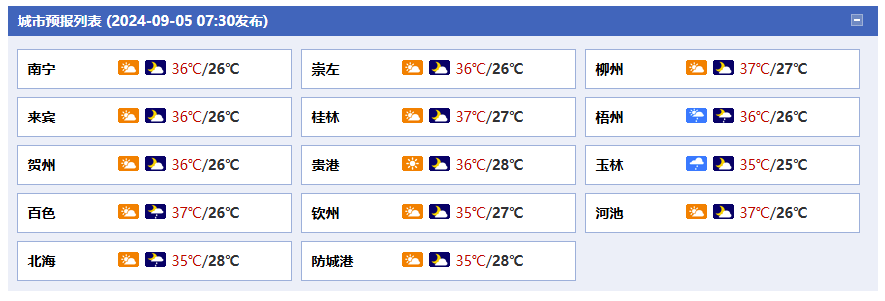 廣西氣象臺(tái)5日05時(shí)發(fā)布預(yù)報(bào):