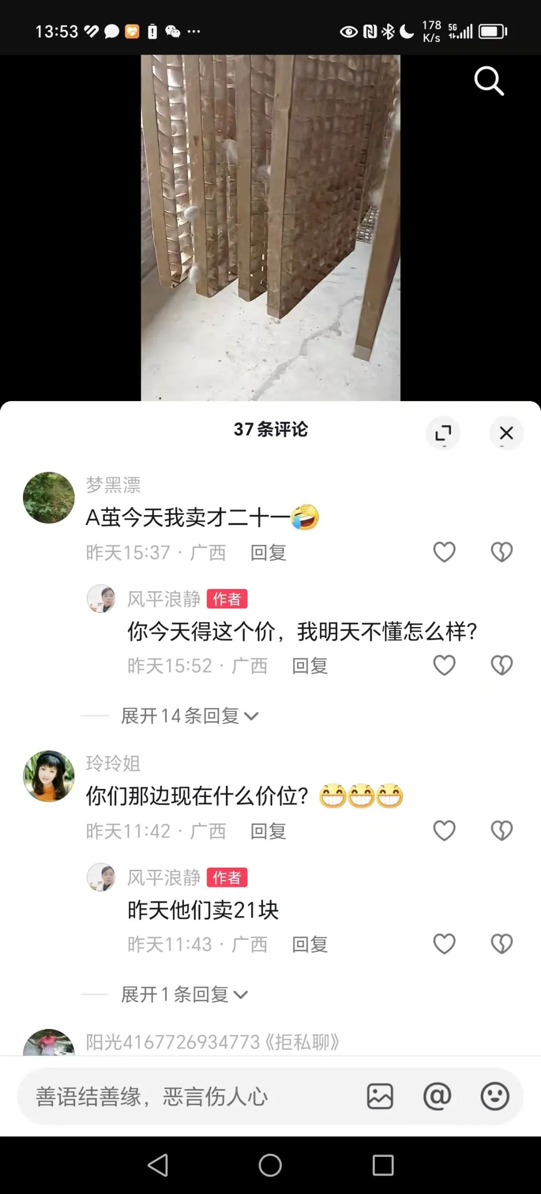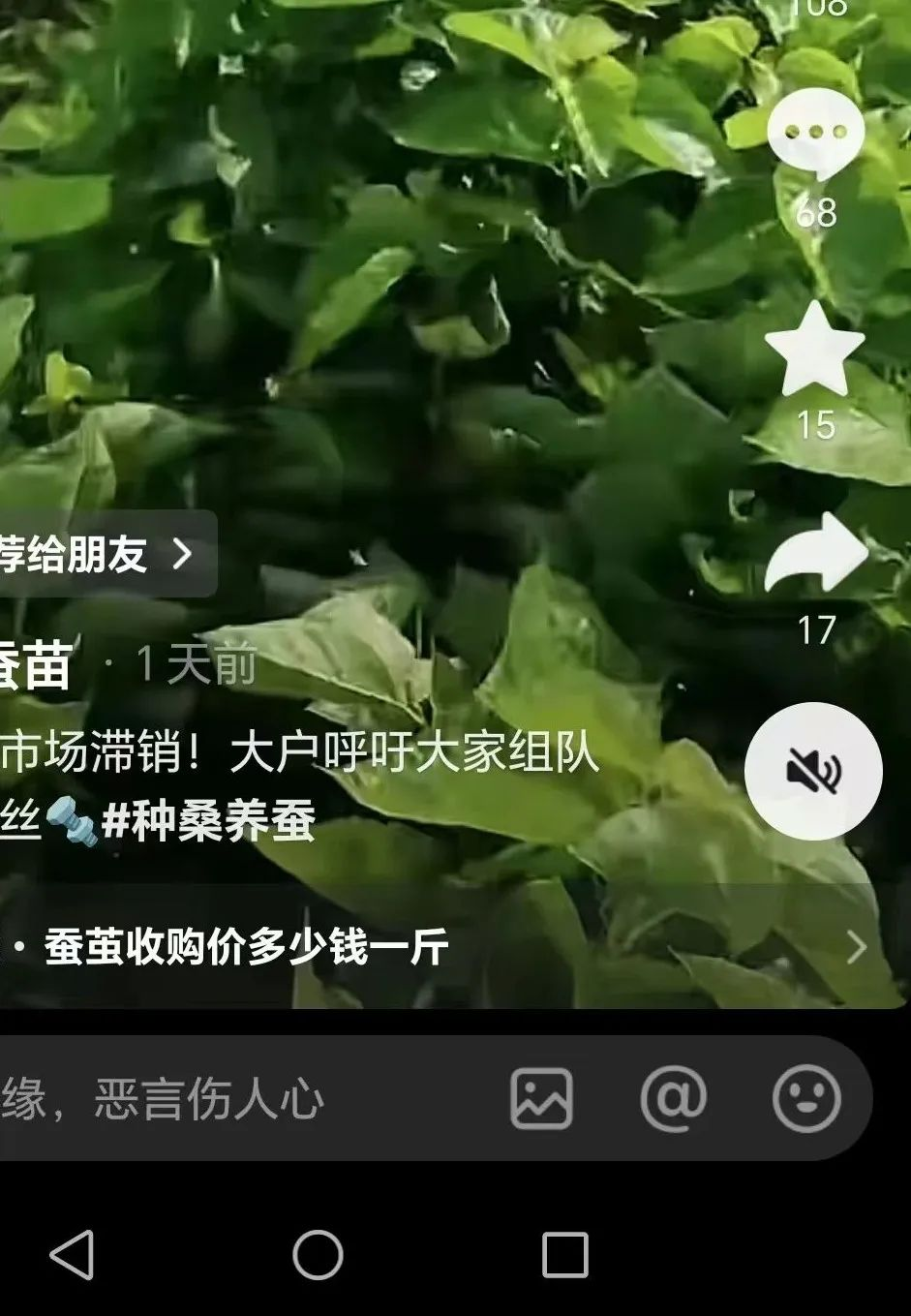 蠶農(nóng)怎么看?選幾則某音平臺上特別是廣西有些蠶農(nóng)的抖音號這兩天所發(fā)內(nèi)容的截屏。關注后期全國天氣進展以及農(nóng)民的積極性程度。