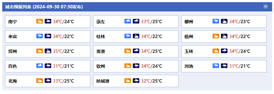 廣西氣象臺(tái)30日05時(shí)發(fā)布預(yù)報(bào):