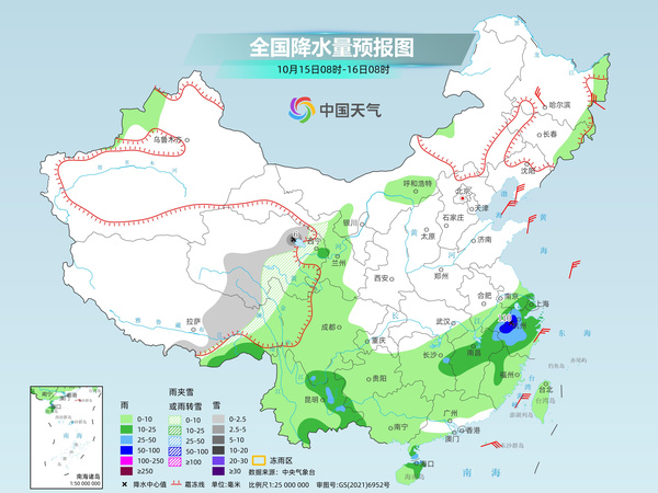 今天(10月15日),我國較強降雨主要出現(xiàn)在江南、華南等地部分地區(qū)。明天起,中東部地區(qū)將現(xiàn)大范圍降水過程,部分地區(qū)雨量同期少見,公眾請注意關(guān)注臨近預報,防范次生災害的發(fā)生。氣溫方面,今天,冷空氣繼續(xù)影響東北等地,18日起還將有強冷空氣影響中東部地區(qū),帶來明顯降溫。