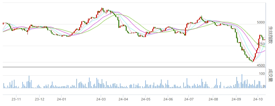 現(xiàn)貨面上,織造企業(yè)繼續(xù)按照剛需進(jìn)行拿貨。生絲作為產(chǎn)業(yè)鏈中的重要一環(huán),其價格波動不僅受到原料成本、下游需求等基本面因素的影響,還與宏觀經(jīng)濟(jì)環(huán)境、政策導(dǎo)向等宏觀因素緊密相連。9月下旬以來,生絲價格出現(xiàn)反彈,這一現(xiàn)象背后,是宏觀環(huán)境、估值修復(fù)以及自身供需邊際有所好轉(zhuǎn)等多重因素的共同作用。在全年蠶繭生產(chǎn)大局即將定下之時,在外圍的寬幅震蕩之中,仍需要重點(diǎn)關(guān)注消費(fèi)面的進(jìn)展。