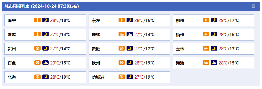 廣西氣象臺(tái)24日05時(shí)發(fā)布預(yù)報(bào):