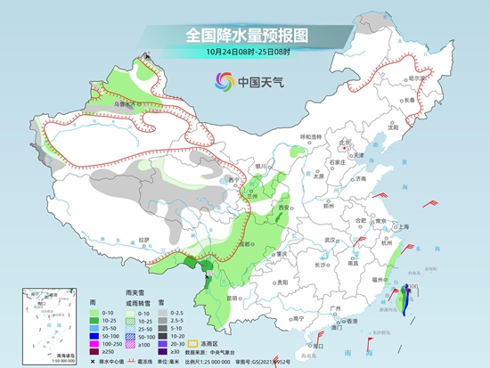 中央氣象臺預計,今天新疆阿勒泰山區(qū)和沿天山一帶、南疆西部山區(qū)、西藏北部、青海中南部、甘肅西南部、內(nèi)蒙古東北部、黑龍江西北部等地部分地區(qū)有小到中雪或雨夾雪,其中,新疆阿勒泰山區(qū)局地有大雪。西藏東南部、云南西北部、臺灣島中部和東部等地部分地區(qū)有中到大雨,其中,臺灣島東部有暴雨,局地有大暴雨或特大暴雨。